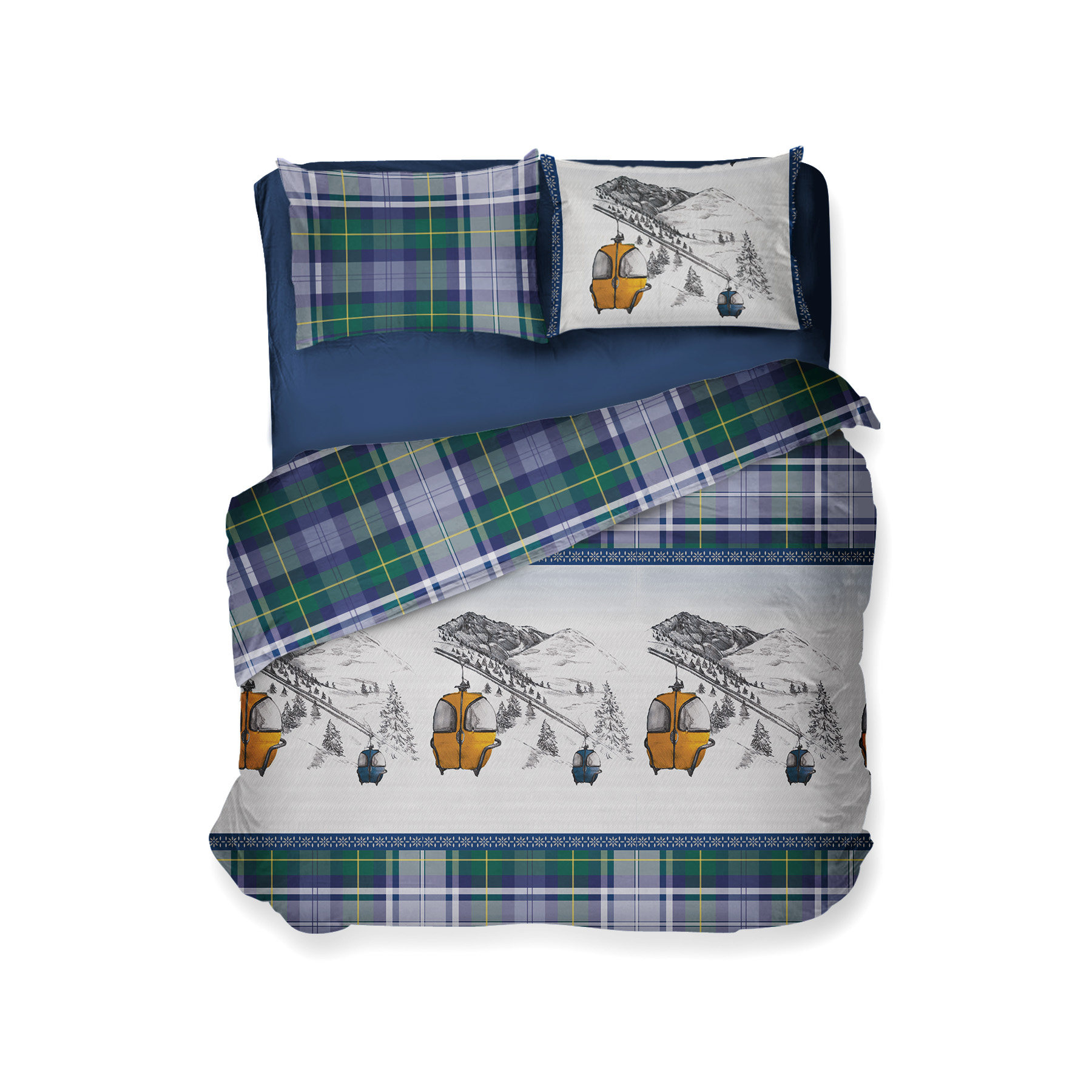 Bettwäsche mit Gondel-Motiv & blau-grünem Karo-Muster