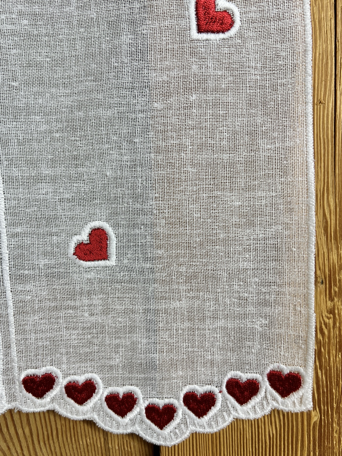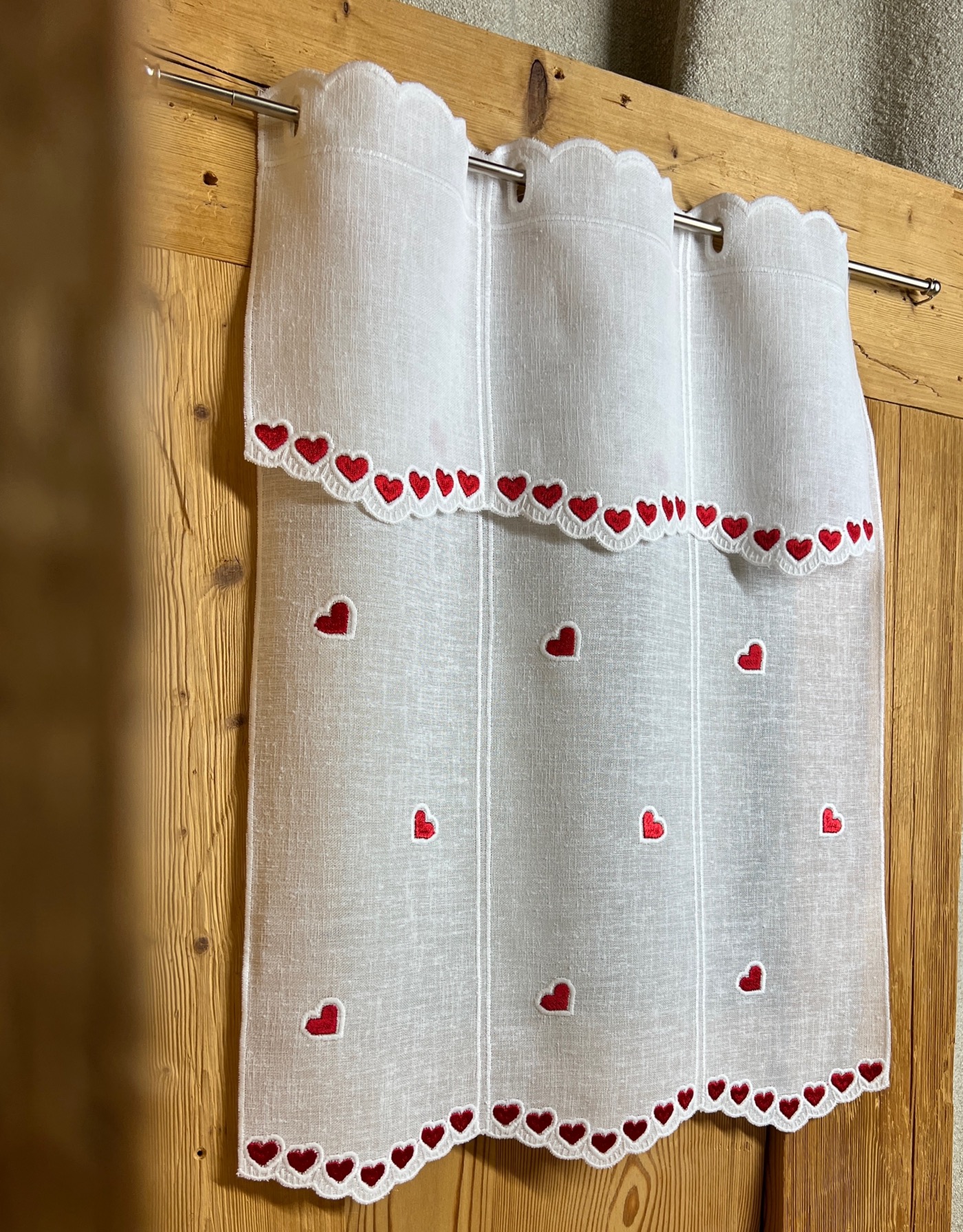 Scheibengardine im alpinen Landhaus-Stil, Herz Stickerei, rot – 7153 LODEN f. 19